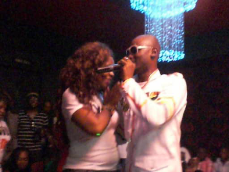 The night club goddess could not hide her joy at the performance churned out by the Bullhaus entertainer and she ended up joining him on stage and in the process saluted him by wiping off the sweat on his face on stage much to the chagrin of the large crowd.